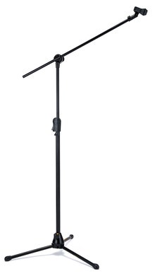 Mikrofonstativ med fod af støbejern, Quick-N-EZ greb og og teleskopbom. Sort.