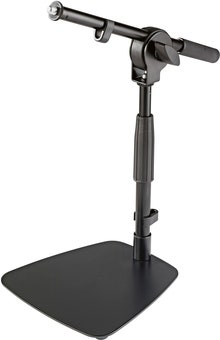 Teleskop-mikrofonstativ med et-hånds justeringsgreb og støbt rund fod. Sort.