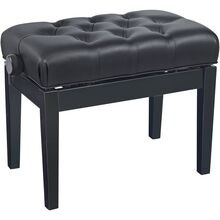 Højdejusterbar pianobænk i massivt træ, sort højglans finish med kunstlædersæde
