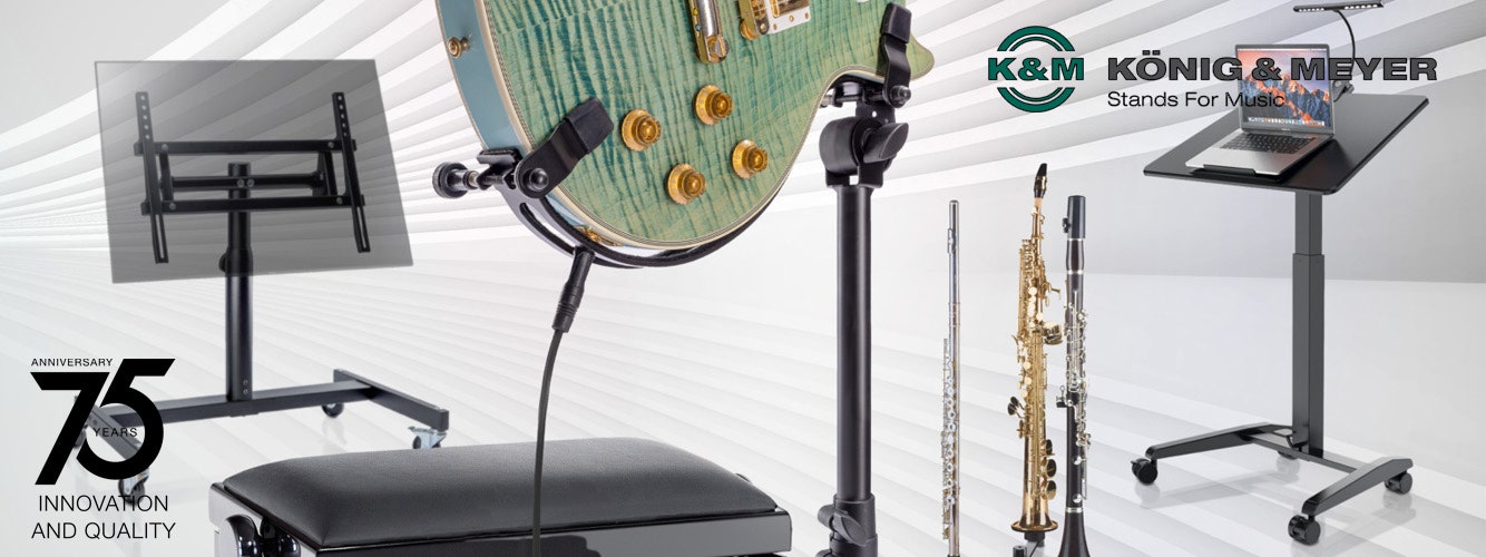 De seneste innovationer til kreative øvere og sceneoptrædener. Hvis du øver regelmæssigt, optræder på scenen eller arbejder i studiet, ved du, at godt udstyr helst skal gå ubemærket hen. Det fungerer bare, støtter dig og giver dig mulighed for at fokusere på det, der betyder mest: din musik. K&M har udviklet nye stativer, stole og tilbehør for at gøre den daglige brug nemmere: ergonomiske, robuste og fleksible – og designet til musikere i den virkelige verden. Her finder du en oversigt over de nye produkter.