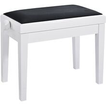 Højdejusterbar pianobænk i massivt træ, hvid højglans finish med sort veloursæde