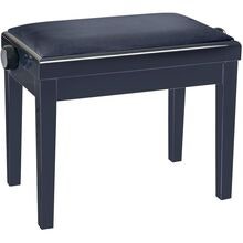 Højdejusterbar pianobænk i massivt træ, sort højglans finish med sort veloursæde
