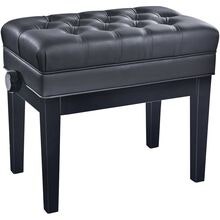 Deluxe højdejusterbar pianobænk i massivt træ, sort højglans finish med quiltet kunstlædersæde