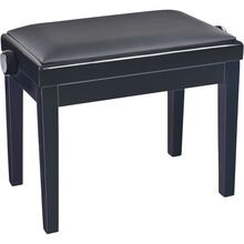 Højdejusterbar pianobænk i massivt træ, sort højglans finish med sort kunstlædersæde