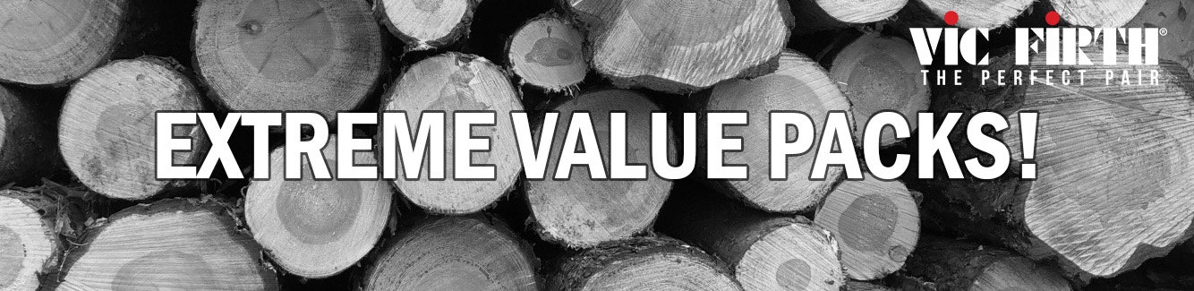 Valuepakker af de sticks, du elsker: Vic Firth X5A og X5B, 4 for 3-pakke — køb 3 par Extreme-sticks og få 1 par gratis.