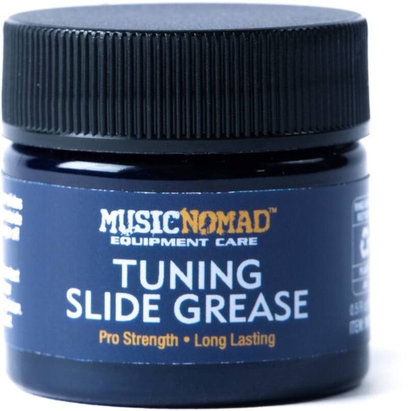 Our premium synthetic tuning slide grease's pro strength formula is the ideal viscosity to help lubricate all brass slides, including Trumpet, Trombone, French Horn, Tuba, Euphonium & more. Formulated in the USA to the highest standard for optimum long lasting performance in hot & cold environments to ensure your brass instrument plays the best. It contains no silicone or lanolin & is clear and odorless so your instrument always looks the best. Each jar comes with a generous amount of grease (0.5 oz/15mL), so it lasts longer & you buy less. That's MusicNomad quality - raising the bar in equipment care.