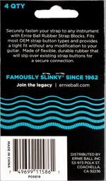 Undgå at din rem hopper af guitaren med de simple, men geniale Strap Blocks fra Ernie Ball. De er lavet af et fleksibelt og holdbart gummimateriale og passer til stort set alle strap-holdere. Der er 4 stk. i hver pose og de fås i forskellige farver.