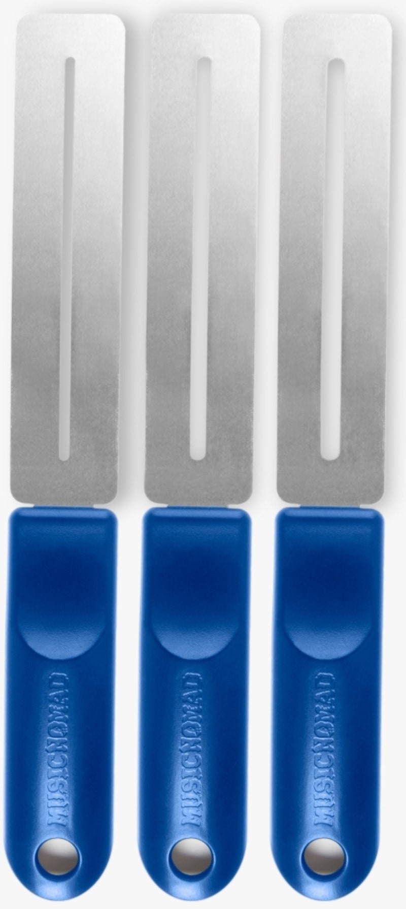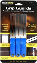 Polering af bånd og andet båndarbejde bliver meget nemmere med MusicNomads patenterede GRIP Guards. Disse førsteklasses gribebrætbeskyttere fremstilles med en højpræcisionsproces, der giver en meget glat finish på det rustfri kvalitetsstålmateriale, som er umagnetisk, korrosionsbestandigt og varmebestandigt. Den specielt konstruerede buede vinkel smyger sig om alle gribebrætter. Det innovative ergonomiske håndtag gør ethvert slibearbejde lettere, hurtigere og forhindrer dine fingre i at komme i vejen. Sættet med 3 GRIP Guards fungerer på alle strengeinstrumenter og inkluderer 1 af hver til små, mellemstore og jumbo båndstørrelser. Den tilpassede bredde lader dig arbejde op og ned af ethvert gribebræt, uanset om det er en guitar, en bas eller en ukulele, der er på bordet.