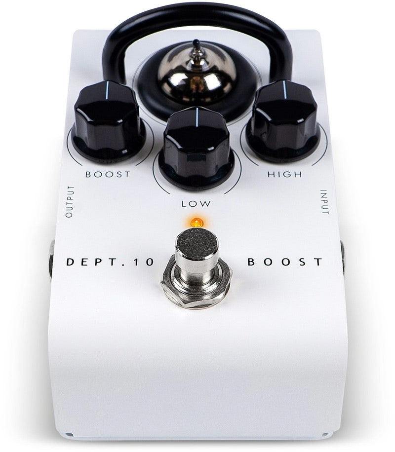 Dept.10 boost-pedalen er designet specifikt til at give et så rent boost som muligt, med over 200V intern power, mens ECC83-røret giver præcis det break-up og den opvarmning af lyden, du forventer. Den passive James-Bandaxall bas- og diskantregulering fuldender værket.