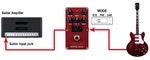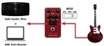 - BRIGHT switch: This is placed before the distortion stage, providing a different character of distortion at each position of the switch. For example, you can change this setting if your Les Paul is not providing enough high-frequency, or if you want to get a harder (scratchier) tone from your front single-coil pickup.
