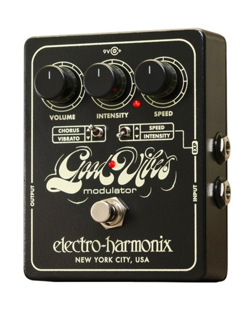 The Good Vibes genererer den ikoniske chorus/vibrato-effekt fra 1960'erne i en opdateret pedal med funktioner designet til at imødegå den moderne guitarists behov. Ligesom den originale Uni-Vibe® bruger den fotoceller til at skabe chorus og vibrato med en varm, bølgende, flydende karakter og lyd og respons, der er tro mod det klassiske design. Forstærkede power rails giver den forbedret definition og headroom, og en expression-pedal-indgang giver dig mulighed for real-time kontrol over hastighed eller intensitet. Der er naturligvis True bypass, så der ikke pilles ved dit signal, når den er koblet ud.