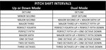 Pico Pitch Fork har 10 pitch shift-intervaller og tre indstillinger for pitch-shifting - Up, Down og Dual. Dual mode har specielt parrede pitch shift-intervaller for at give mulighed for flere musikalske effekter.