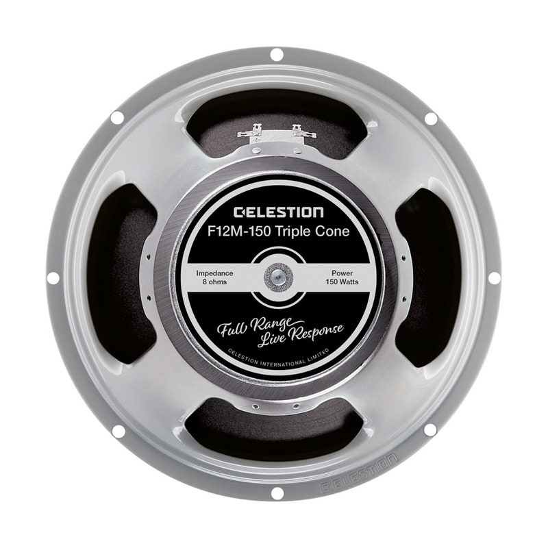 The F12M-150 is a full range, LIVE response speaker, purpose designed for use with amp modellers and IRs. Its unique design features two additional tweeter cones integrated into the main woofer cone (making it “Triple Cone”). This enables the speaker to deliver near full-range frequency performance: from 60Hz up to 12kHz, for a rich and detailed sound, whatever your set-up.