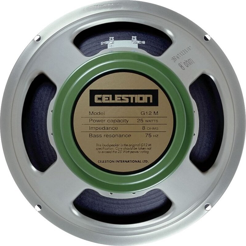 Klassikeren G12M Greenback er omhyggeligt udviklet gennem årtier; forbedringer er foretaget, men den eftertragtede tone er bibeholdt uden kompromisser. Denne version har alle de egenskaber, som er klassisk for G12M, men attacket er bredere i mellemtonen, og de højere frekvenser er bedre kontrolleret. Denne højtaler er perfekt for at give klassisk drive og definition til moderne "high gain"-forstærkere.