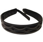 Klassisk læderrem med mønster af tykke sting og udkæringer. Med indsyet skum og bagside af vævet stof. Bredden er på 6,35 cm og længden kan justeres fra 104 til 137 cm.
