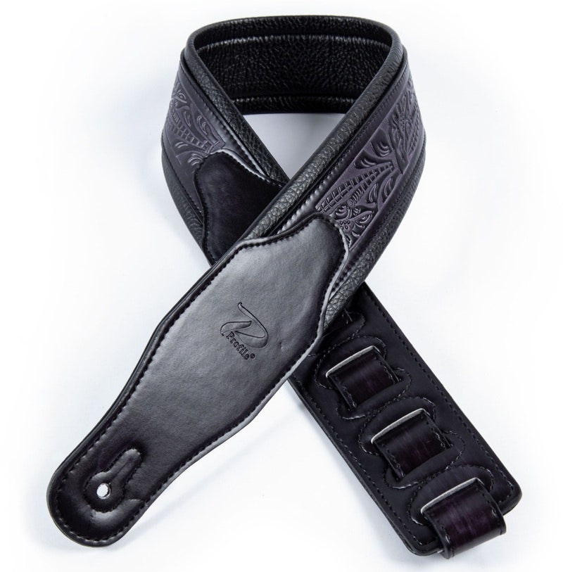 Artikelnummer 3422319Guitarrem af italiensk læder med varmepresset mønster. Sor/blåsort.