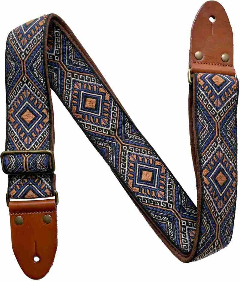 Artikelnummer 34217122" Jacquard-vævet guitarrem med klassisk kantmønster og bagside af ruskindslæder.