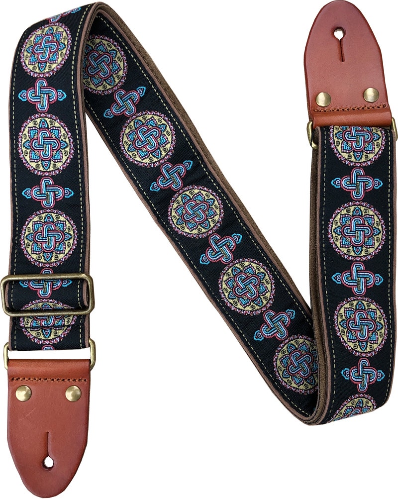 Artikelnummer 3421846Guitarrem med klassisk Jacquard-vævet mønster, bagside af ruskind og spænde af messing.