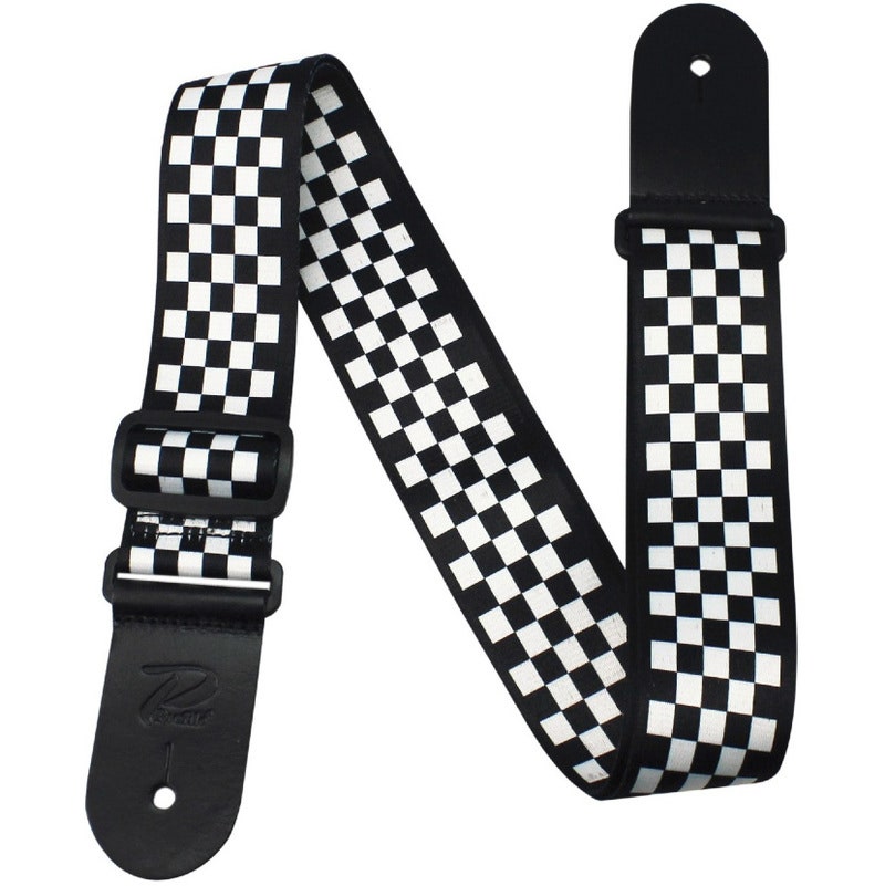 Artikelnummer 3421018Guitarrem af Terylene med ender af læder og spændende og spraglet "Checkers" mønster.
