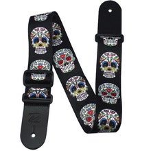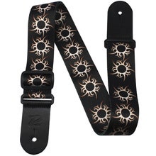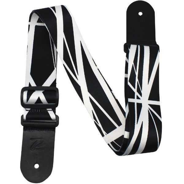 Artikelnummer 3421010Guitarrem af Terylene med ender af læder og spændende og spraglet "Stripes Black" mønster.