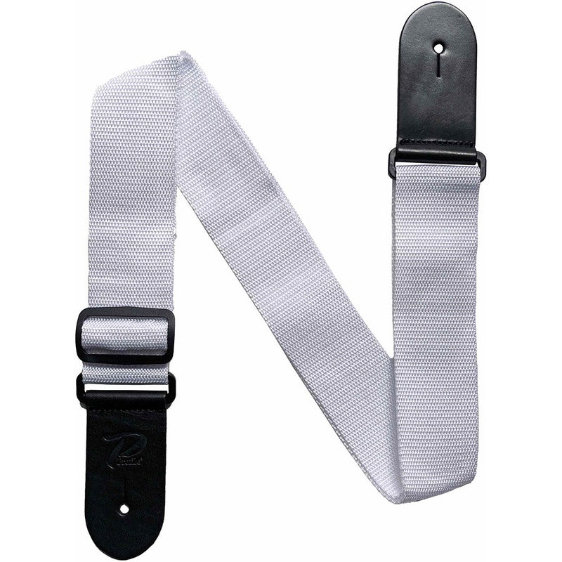 Artikelnummer 3420901Komfortabel og justerbar vævet polyester guitarrem i hvid, med sorte læderender.