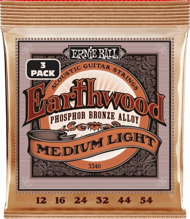 Artikelnummer 1103546Earthwood Phosphor Bronze Medium Light (0.12-0.54) Valuepack with 3 Sets