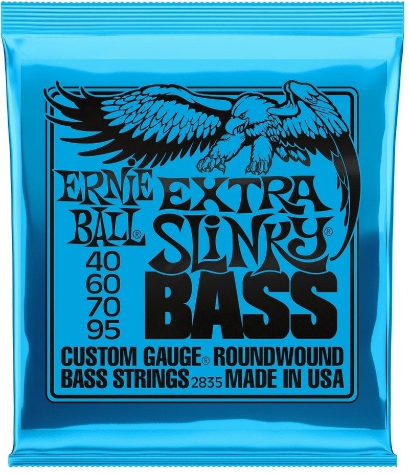Ernie Ball Extra Slinky Bass Nickel elektriske bas-strenge er lavet af nikkelbelagt stål viklet om en sekskantet stålkernetråd. Hver basguitarstreng producerer en klar, afbalanceret tone og er fremstillet af de fineste råmaterialer i den smukke Coachella Valley i det sydlige Californien.