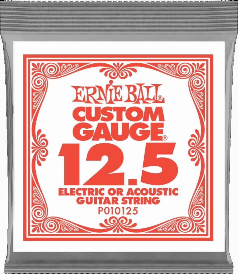 Ernie Ball Plain Steel Electric or Acoustic Guitar Strings are made of specially tempered tin plated high carbon steel used on electric and acoustic guitars. Ernie Ball revolutionized the market by offering Custom-Gauge single string options allowing guitarists to create personalized string sets.