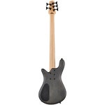 Artikelnummer 15410295-strenget elbas m/hals af europæisk elletræ, 3-delt hals af ameriaknsk ahorn, gribebræt af rosentræ og EMG X pickupper. Transparent Black.