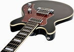 Dette ekstraordinære instrument har en omhyggeligt udformet mahognihals og -krop, der leverer en resonans, der taler direkte til musikkens sjæl. Den er udstyret med to kraftfulde Hagström Custom 62 humbuckers, som leverer et alsidigt klangspekrtum, der ubesværet tilpasser sig din musikalske rejse, uanset om du væver sødmefyldte melodier eller slipper kraftfulde riffs løs.