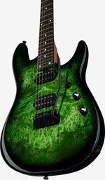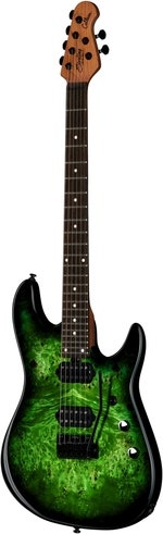 Artikelnummer 1572145Elguitar, 7‑strenget, krop i elletræ, poppel burl‑top, hals i ristet ahorn, gribebræt i rosentræ, SBMM JR humbuckere, 12 dB volumen boost, låsbare stemmeskruer, tremolo.