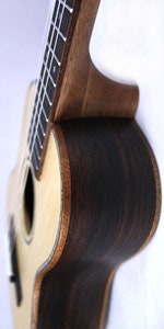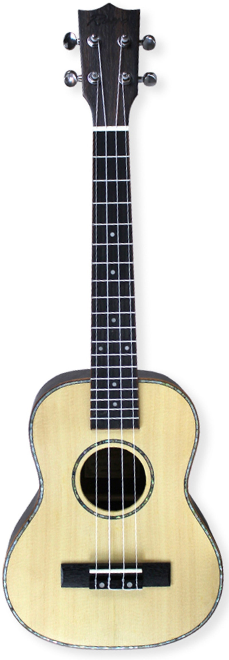 Artikelnummer 4334400Tenor sized ukulele with full bodied, and warm sound. Equipped with a solid Spruce top and Ebony back and sides. Abalone shell inlays in the rosette, and Abalone shell and Mahogany top binding.