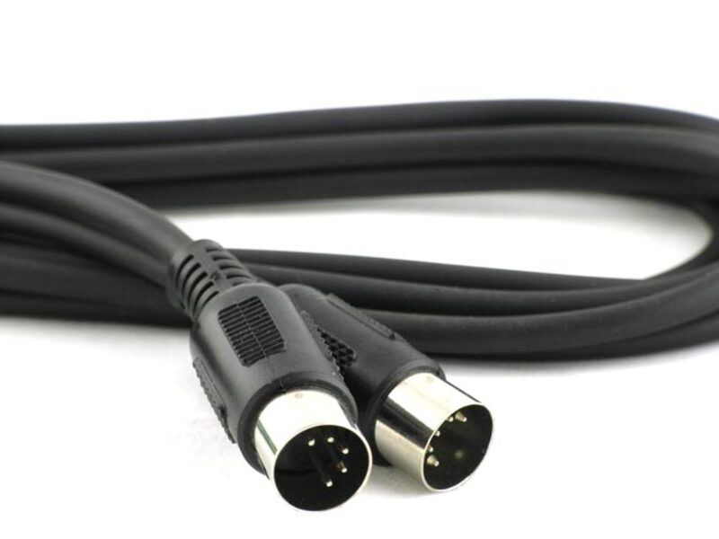 Blødt og fleksibelt MIDI-kabel med 5-pol DIN stik. Sort 6m