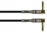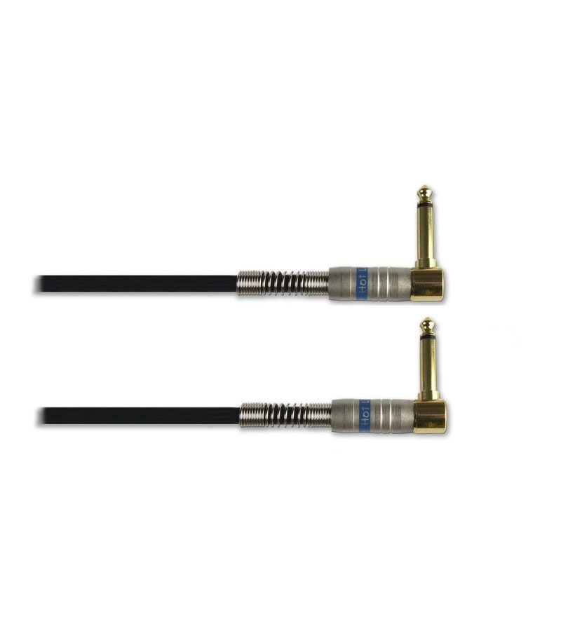 Sort patch kabel med stik og aflastningshylster i metal. Vinklede stik.