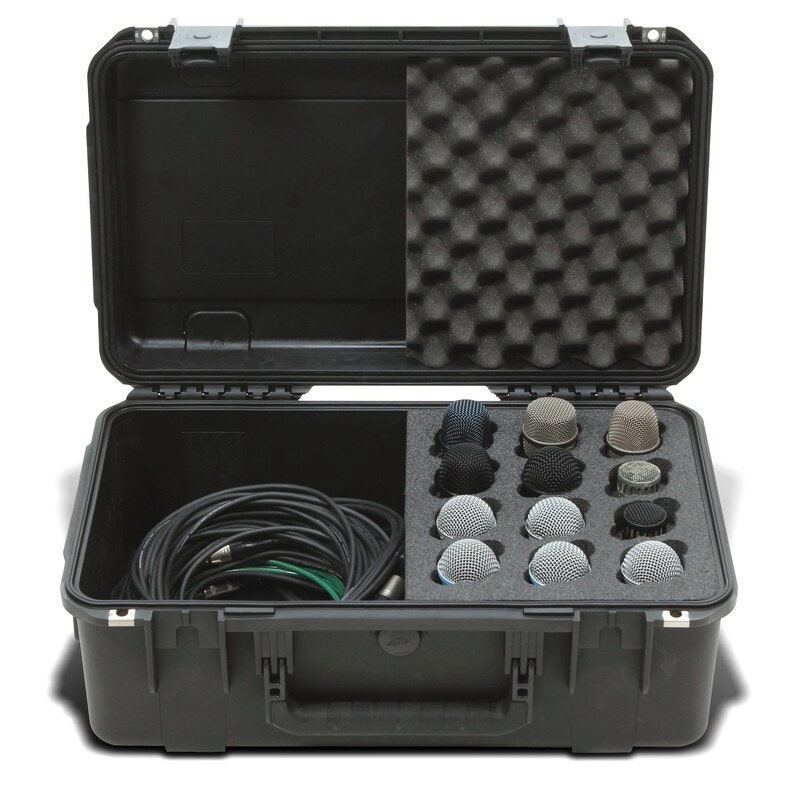 Tasker til mikrofoner som lagres lodret. Taskerne hører til 3i-serien som er en samling formstøbte og vandtætte tasker, konstrueret af en ultraholdbar ”polypropylene copolymer resin”, i et vand- og lufttæt design, der er modstandsdygtig mod skader og stød.