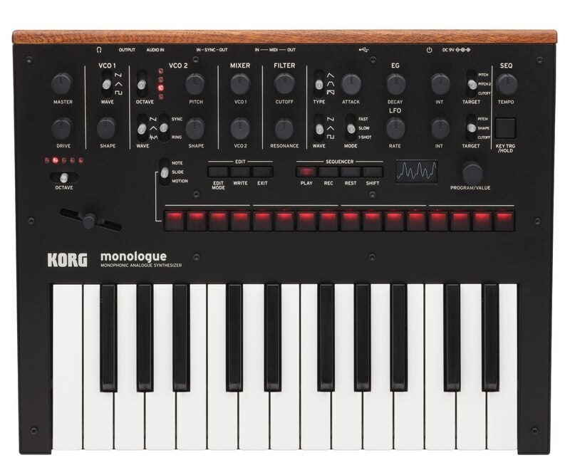 The monologue is a 25-key, fully programmable monophonic analog synthesizer with a voice all its own. While sharing its sleek layout, knob-per-function workflow and high-quality construction with the best-selling minilogue, monologue is a truly unique new synth for all types of musicians; featuring new voicing and sound sculpting abilities – at an amazing price. The monologue's completely new filter, modulation, drive, and LFO can generate powerful basses and sharp leads, creating awesome mono sounds that showcase its single-voice design. The step sequencer has also been dramatically expanded, allowing more intuitive and more complex editing. With a lineup that gives you a choice of five eye-catching colors, this compact instrument has a strong personality to match your own.