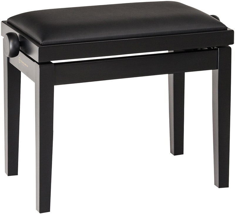 Kvalitetsbænk med trinløs højdejustering og sæde af kunstlæder. Matsort.