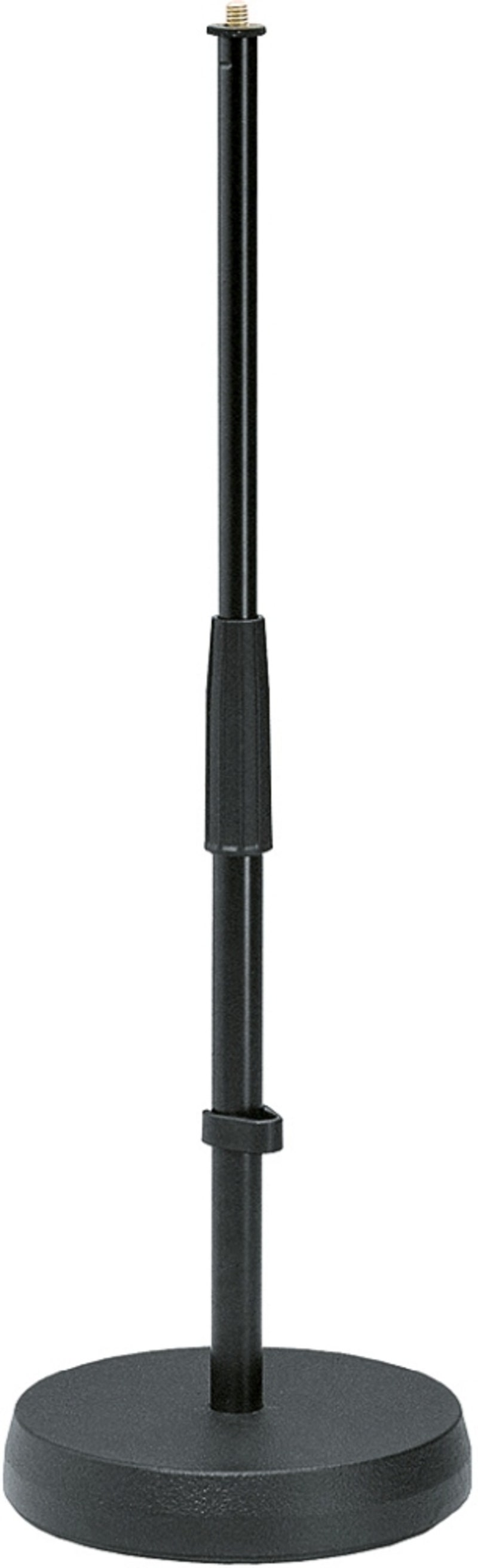 Bordstativ med teleskop, rund fod og vibrationsdæmpende gummiring. 3/8" gevind.