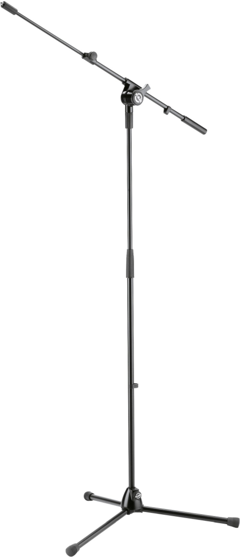Eksklusivt 2-delt mikrofonstativ med sammenklappelige ben og bom. Sort.