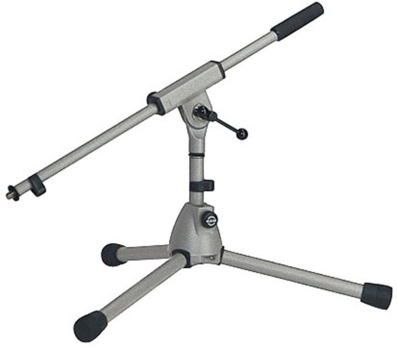 Artikelnummer 2552591GEkstra lavt mikrofonstativ med sammenklappelige ben og bom. Matgrå finish og vred af gummi.