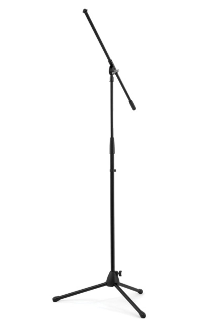 Foldable Microphone Stand with boom and tripod legs. Black.