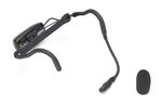 - Water/sweat-resistant Qe headset microphone with condenser capsule