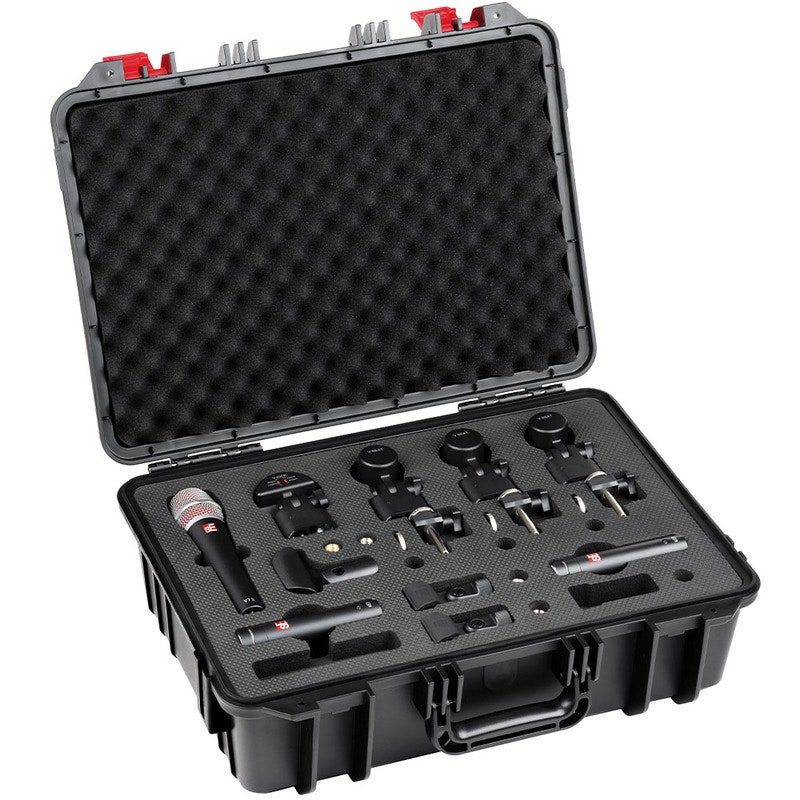 1x V KICK, 3x V BEATs med V CLAMPs, 1x V7x og 2x sE8 i robust transportkasse.