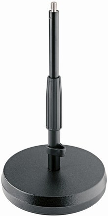 Bord/gulvmikrofonstantiv med rund stålfod. Sort.