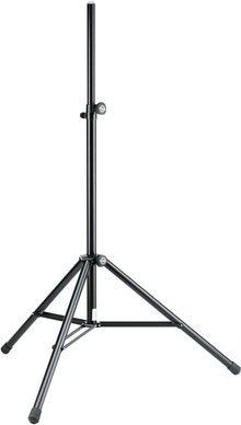 Lys/højttalerstativ med trinløs højdejustering og kraftige, runde ben.