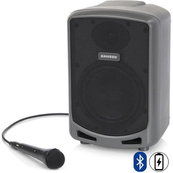 Dette lette, genopladelige højttalersystem vejer kun lige under 5,5 kg og leverer fyldig, ren lyd via en 6" bashøjttaler og en 1" diskanthøjttaler. Stream musik trådløst fra enhver Bluetooth-enhed i op til 20 timer på en enkelt opladning. Den leveres med en håndholdt dynamisk mikrofon og kabel så du kan synge med på dine yndligshits. Med Samsons mangeårige erfaring fra design af store PA-højttalere til live musik i ryggen, leverer Expedition Express+ rig, dynamisk lyd fra sit 2-vejs højttalerkabinet og avancerede 75-watt effektforstærker.