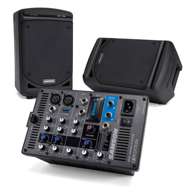 Samsons Expedition XP300 er et alt-i-et lydsystem, der tilbyder fremragende lydkvalitet og hurtig og nem opsætning. XP300 leverer 300 watt, har en 6-kanals letbetjent mixer og to 6" højttalere. For at gøre transport og bærbarhed så bekvem som muligt har XP300 et unikt højttalerlås-design, der gør det muligt at pakke systemet og alle dets komponenter sammen og transporteres som en enkelt enhed, der vejer mindre end 14 kg.