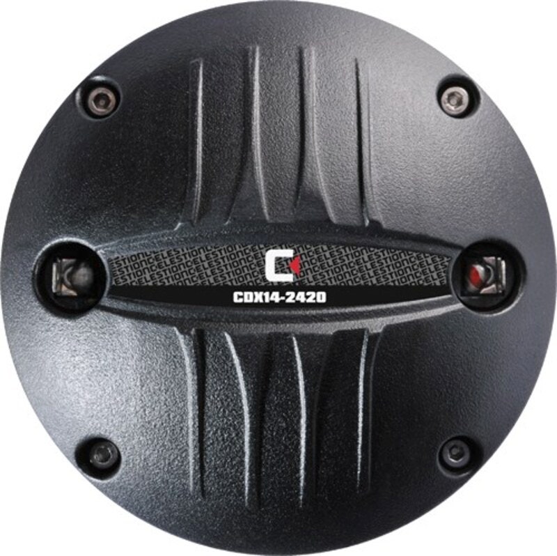 1" kompressionsdriver med neodym-magnet og 2,4" talspole. 70W RMS, 106.5dB, 8ohm