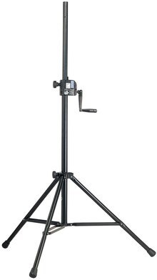 Lys/højttalerstativ med trinløs højdejustering og kraftige, runde ben.