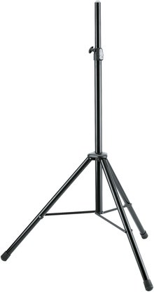 Lys/højttalerstativ i stål med trinløs højdejustering og kraftige, runde ben i stedet for U-profil ben.